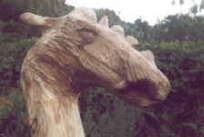 The piece of wood I selected for the body and head of Morris (The Monster, sorry I have to give these things names) was from the crown of an oak tree that had been felled as part of a coppice regeneration project, the head was part of the trunk of the tree and the neck was a curved branch. Initial roughing out was done with a chain saw and the texture and detail were then finished using gouges and chisels.